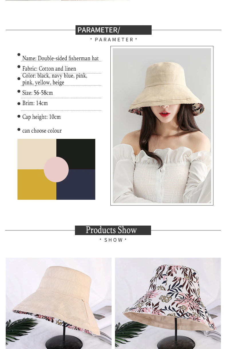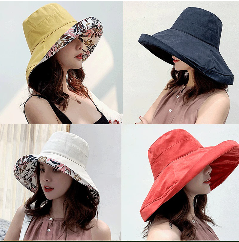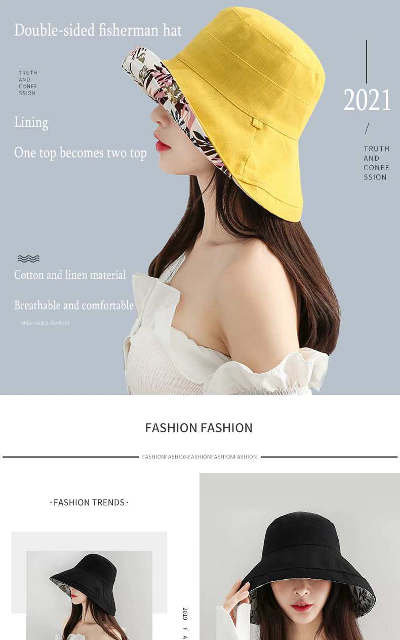 6.23US $ |K34 Women's hat Bucket hat Fashion Panama Anti UV Summer Hat Big Brim Hat Double Sided Fisherman Hat Sun Protection Su