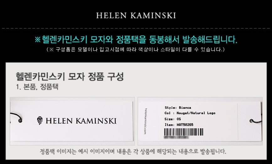 이 곳 온라인 판매처는 온라인으로 최다 판매를 하고 고객만족도가 1위라고 한다. 헬렌카민스키 [직수입 정품]을 국내 재고 보유를 하고 당일 출고가 가능하다고 한다. 그리고 백화점처럼 서비스를 바라면 안 된다. 정품 케이스, 쇼핑백, 선물박스, 이염방지 테이프, 모자 고정틀, 더스트백 등은 제공하지 않는다.
